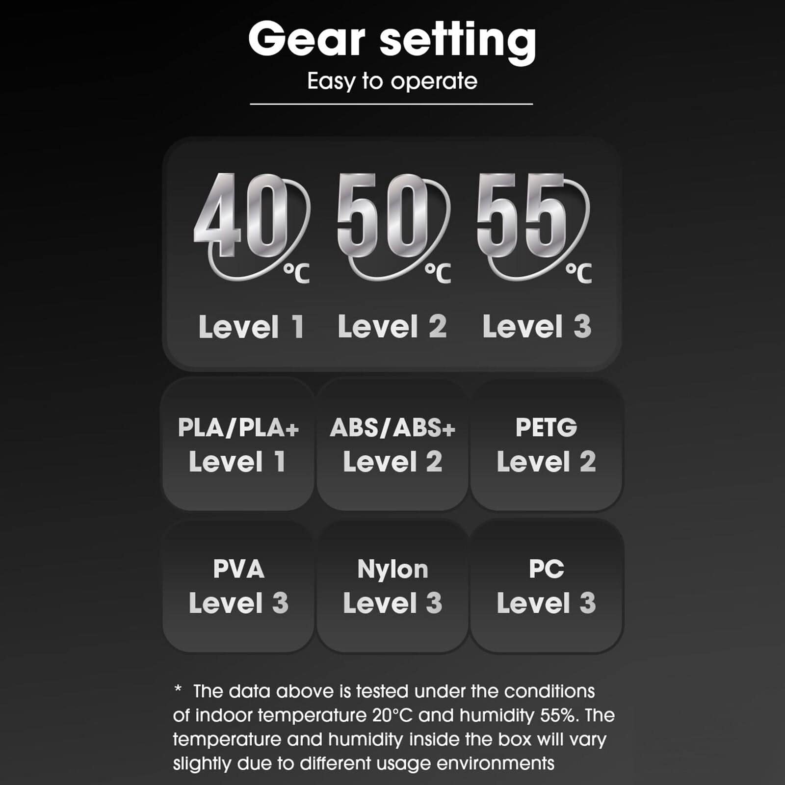 The Suszarka do żarnika eSUNGórna pokrywa jest wykonana z przezroczystego materiału, który pomaga obserwować pozostałe włókna w czasie rzeczywistym;