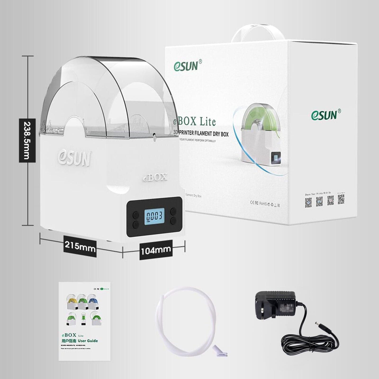 eBOX Lite to ekonomiczny, suchy pojemnik do przechowywania filamentów o stałej temperaturze i wilgotności, odporny na wilgoć i kurz oraz z funkcją ogrzewania, opracowany specjalnie przez eSUN dla filamentów do druku 3D.