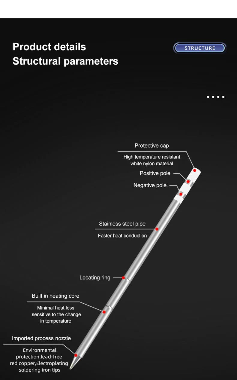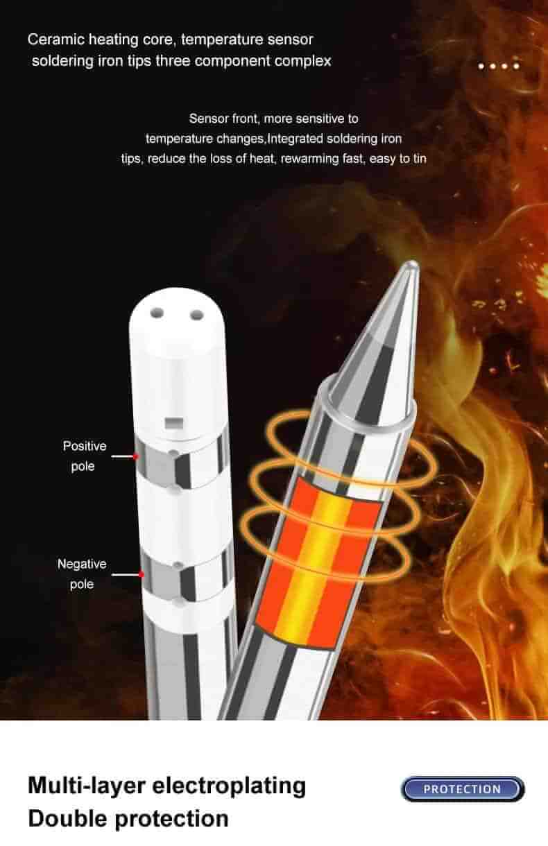 - Chroniący środowisko grot lutownicy, szybkie przewodzenie ciepła, łatwe cynowanie, szybkie nagrzewanie.