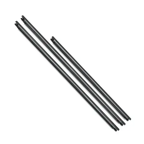 Zestawy zawierają wsporniki rur z włókna węglowego i zaciski do montażu na szynie.
